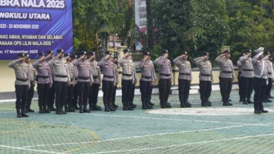 BundaranNews.com_ Pemerintah Kabupaten Bengkulu Utara dalam hal ini diwakili oleh Asisten II Setdakab Bengkulu Utara Ir. Alfian, MM menghadiri Apel Gelar Pasukan oleh Kepolisian Resor (Polres) Bengkulu Utara pada Operasi Zebra Nala 2025 di Lapangan Markas Kepolisian Resor (Mapolres) Bengkulu Utara, Senin (17/11/2025).