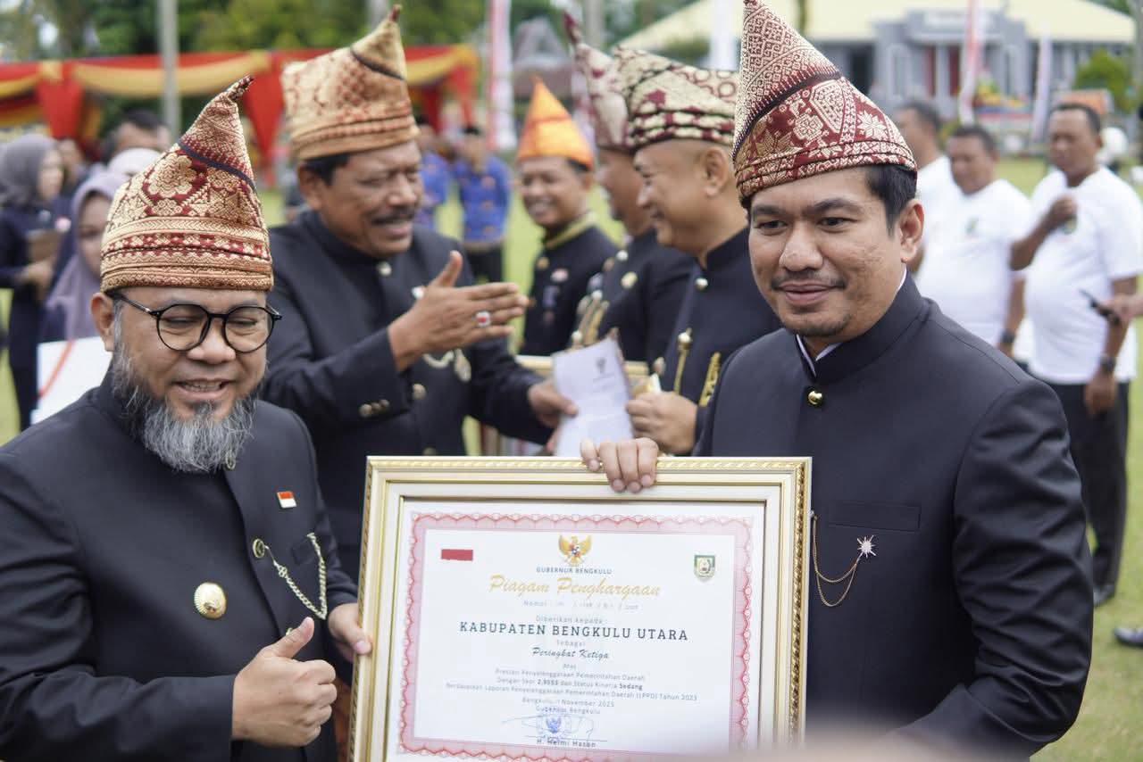 Dalam kesempatan itu, Bupati Arie Septia Adinata mengungkapkan rasa syukur atas capaian tersebut serta menyampaikan apresiasi kepada seluruh jajaran Pemerintah Kabupaten Bengkulu Utara.(MC Bengkulu Utara)