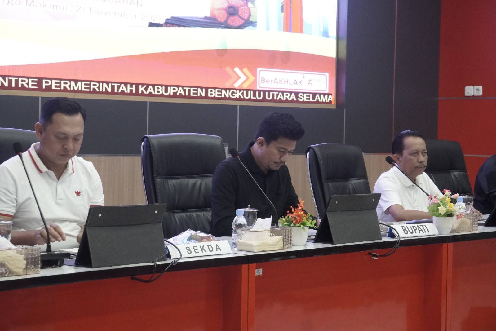 Bertempat di ruang Command Center Setdakab Bengkulu Utara, Jumat (21/11/2025), acara yang di hadiri oleh Asisten, Staf Ahli, serta seluruh OPD Bengkulu Utara sekaligus Camat, Bupati Bengkulu Utara mengapresiasi OPD yang telah melakukan penyerapan anggaran dengan maksimal sekaligus beliau mengajak kepada OPD yang belum maksimal agar meningkatkan realisasi penyerapan anggaran dengan menerapkan aksi jemput bola agar realisasi anggaran tahun 2025 dapat terserap sesuai dengan rencana yang telah di susun.