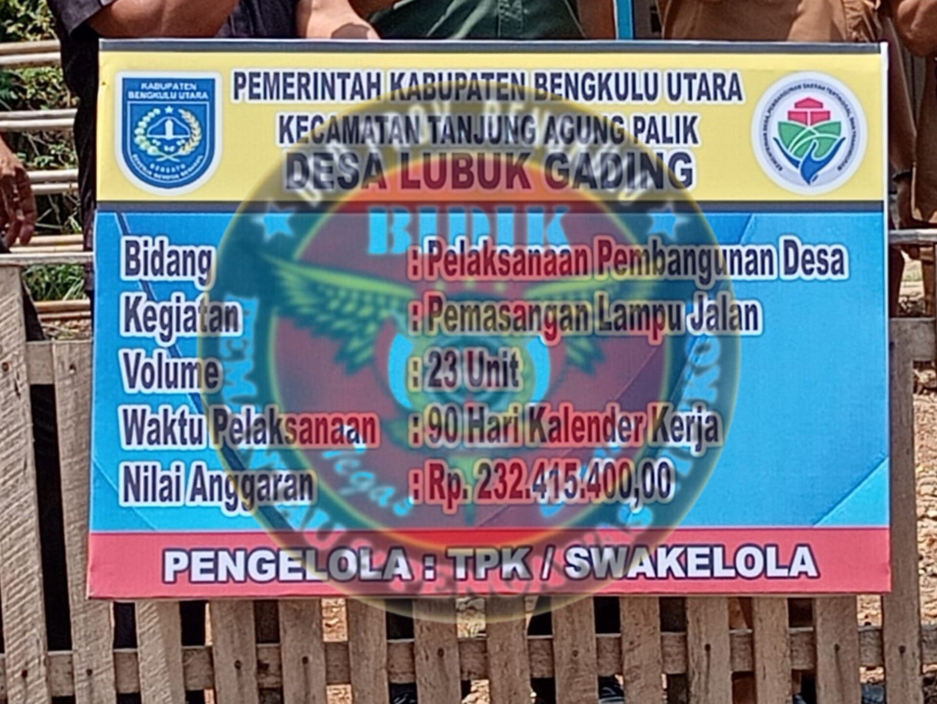 BundaranNews.com_ Pengadaan lampu jalan di desa Lubuk Gading Kecamatan Tanjung Agung Palik tahun anggaran 2024 semakin menarik untuk disimak. Pasalnya pengadaan lampu jalan yang anggarannya mencapai Rp 232.415.400,- untuk pemasangan sejumlah 23 unit lampu jalan tersebut diduga mark-up anggaran.
