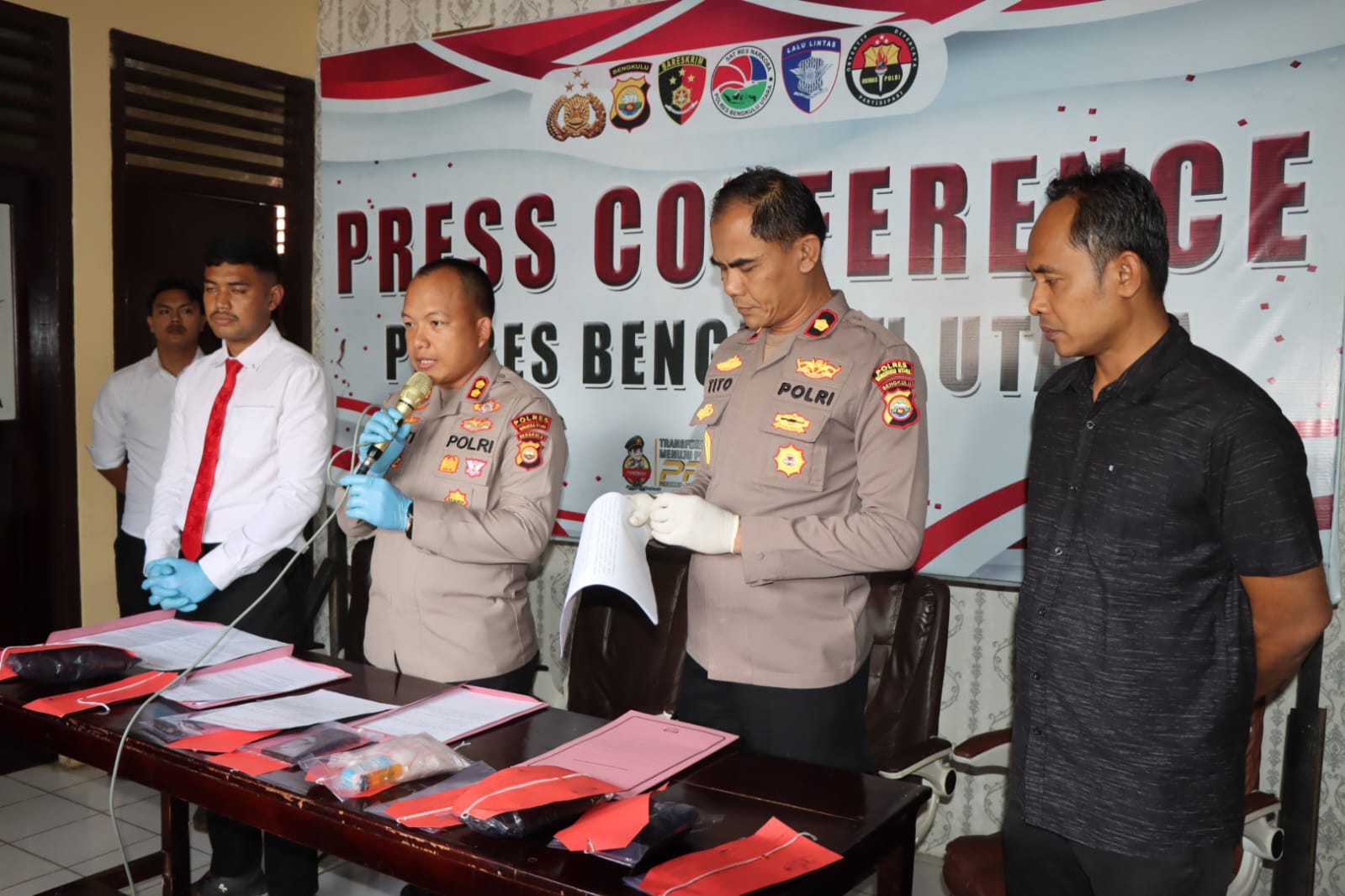 BundaranNews.com_ Satuan Reserse Narkoba (Sat Resnarkoba) Polres Bengkulu Utara kembali menunjukkan komitmennya dalam memberantas peredaran gelap narkotika. Dalam konferensi pers yang digelar, pihak kepolisian merilis keberhasilan pengungkapan tiga kasus narkoba dengan mengamankan tiga orang tersangka dalam kurun waktu satu bulan terakhir.
