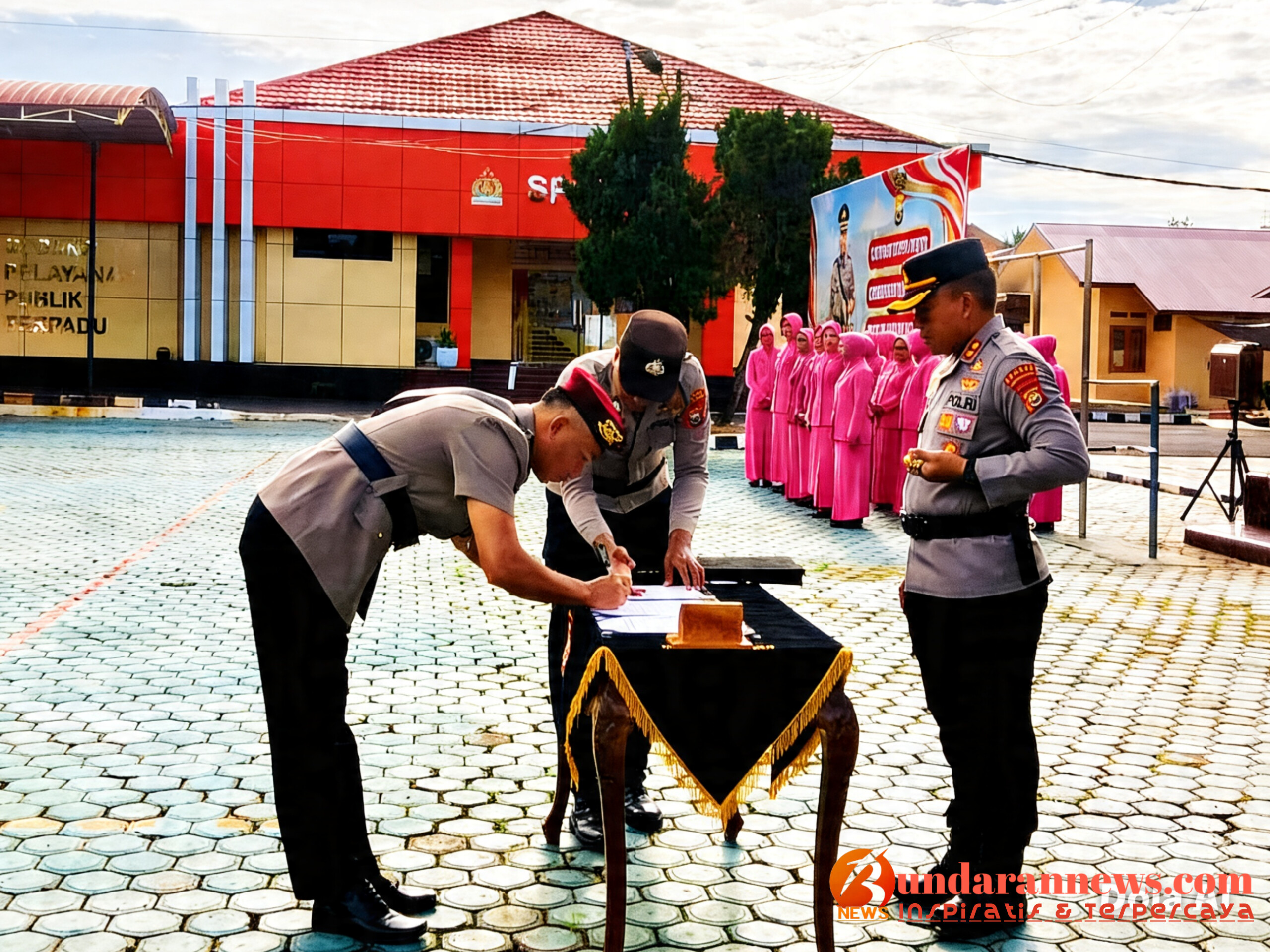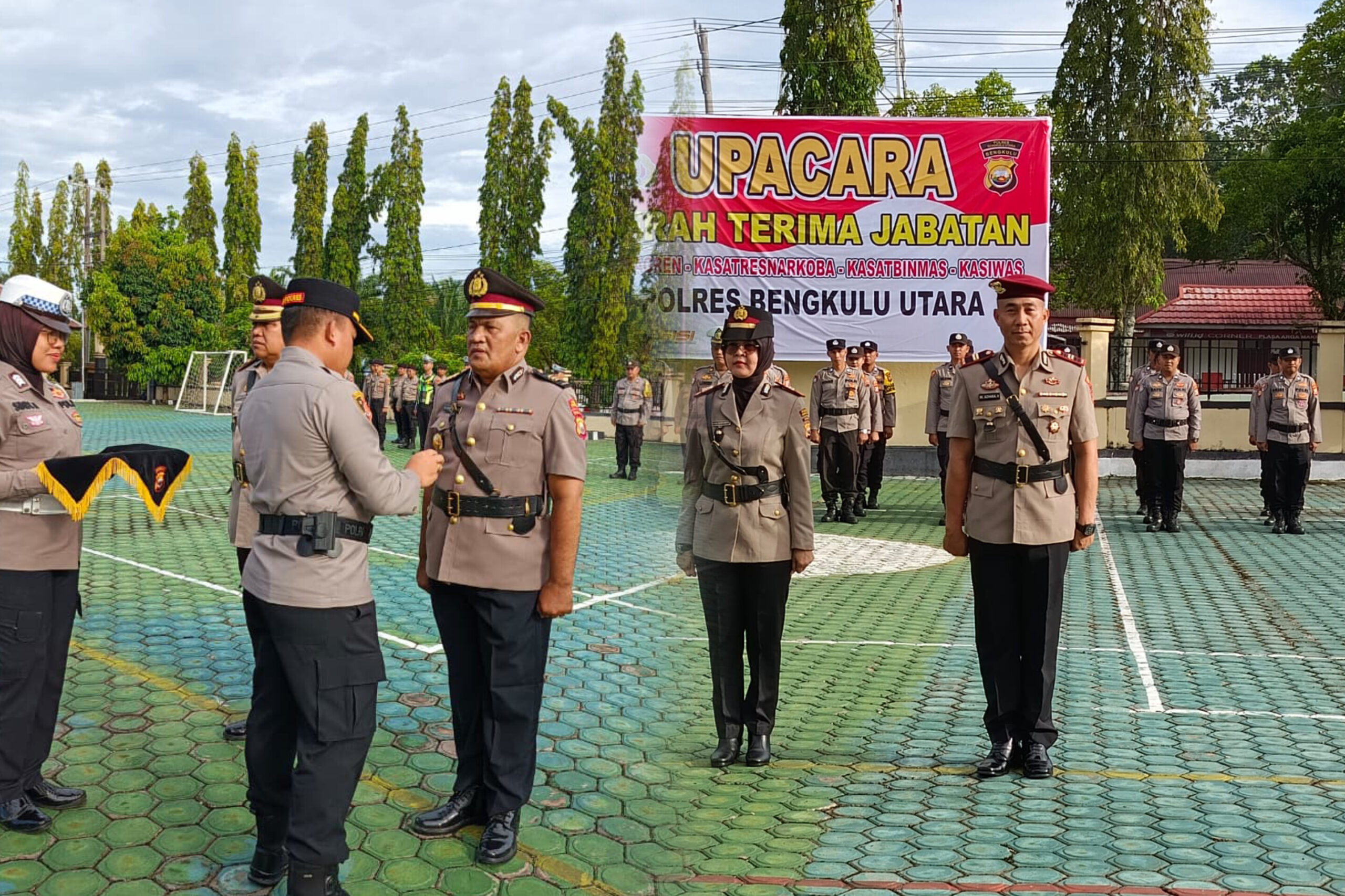 BundaranNews.com_ Polres Bengkulu Utara melaksanakan Upacara Serah Terima Jabatan (Sertijab) sejumlah pejabat utama sekaligus acara kenal pamit pejabat lama dan pejabat baru, Jumat (17/4/2026) pukul 08.00 WIB di Lapangan Mako Polres Bengkulu Utara.