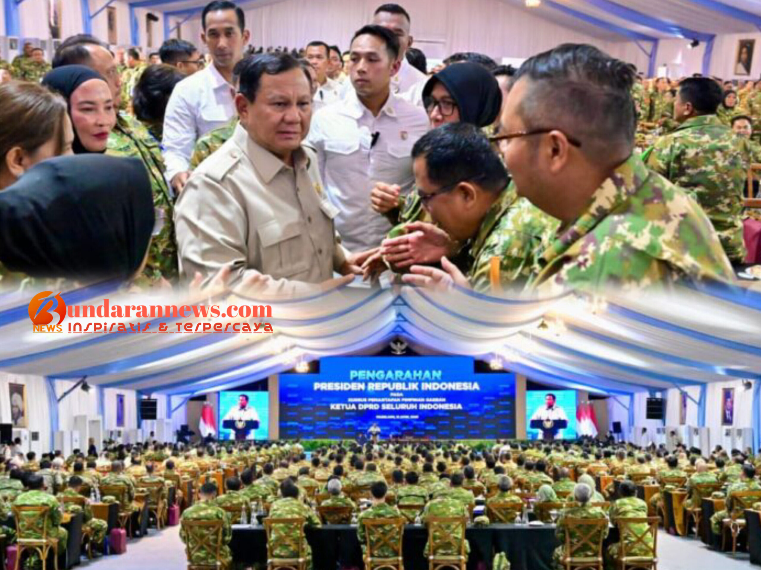 BundaranNews.com_ Presiden Prabowo Subianto memberikan pengarahan pada Kursus Pemantapan Pimpinan Daerah (KPPD) Ketua Dewan Perwakilan Rakyat Daerah (DPRD) seluruh Indonesia yang digelar di Kompleks Akademi Militer Magelang, Jawa Tengah, pada Sabtu, 18 April 2026. Acara KPPD ini mengusung tema “Memperkuat peran pimpinan DPRD provinsi/kabupaten/kota guna mendukung Asta Cita menyongsong Indonesia emas 2045.”